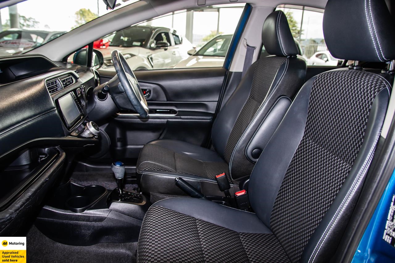 The 2015 Toyota Aqua 1.5 Hybrid in blue is a compact and efficient hybrid vehicle. It features a push-start system for added convenience and Bluetooth connectivity for seamless device pairing. This car is ideal for eco-conscious drivers looking for practicality and technology in a stylish package.