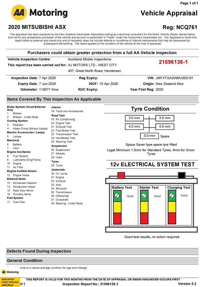 All our vehicles are AA/VTNZ APPRASIED, Quality is our assurance